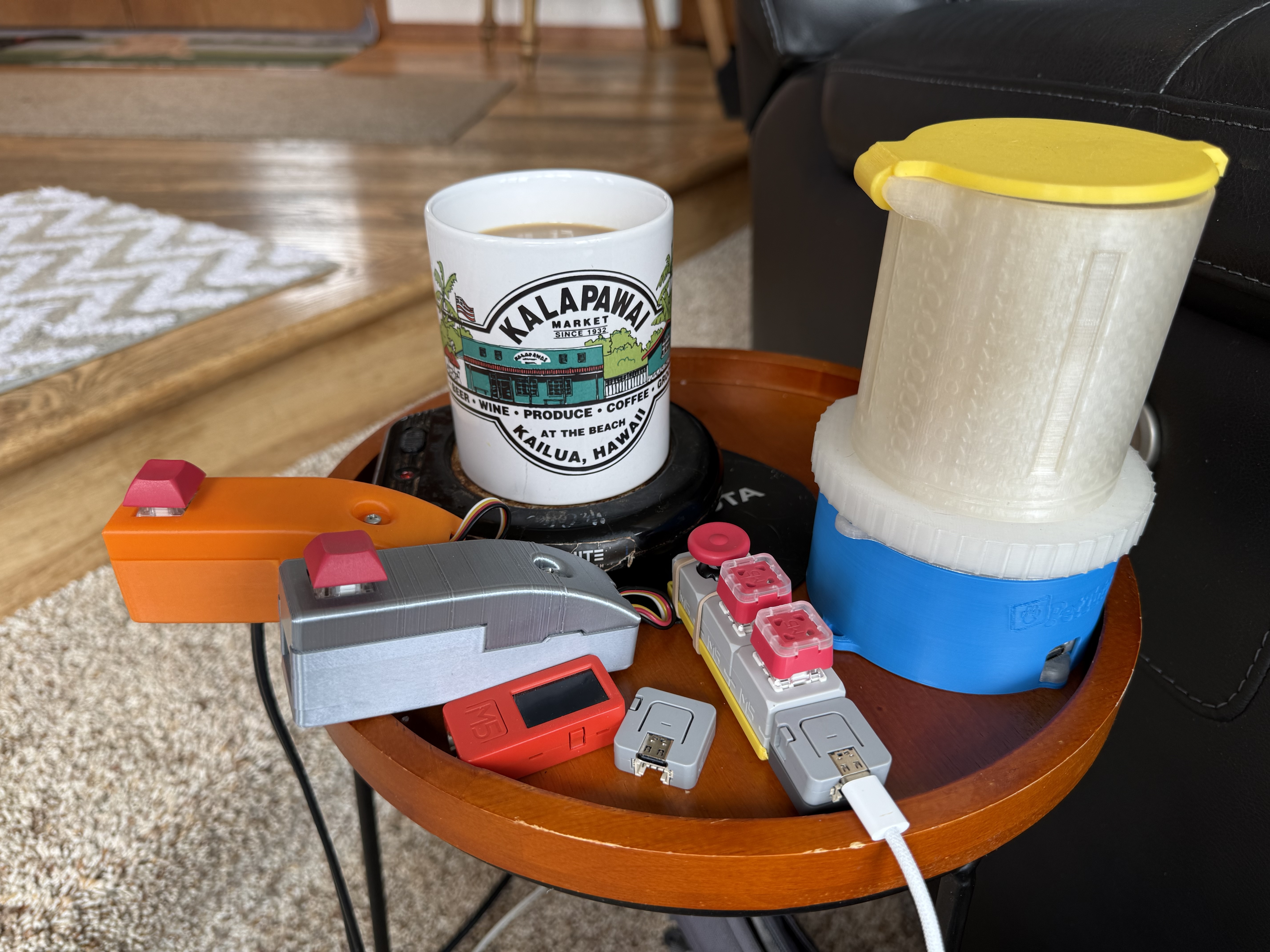 This image shows a user scanning a Semantic Marker® located on that round device - which is our 3d printed